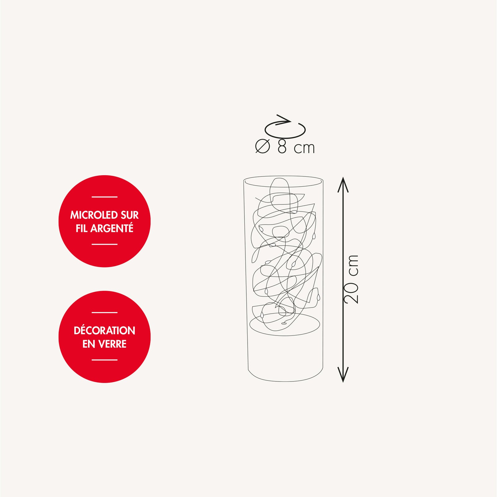 Parfait pour habiller votre table, votre étagère ou vos bouts de canapé, ce vase Vitroled illuminera votre intérieur. Rempli de microLED, il vous apportera une lumière chaleureuse et vintage chic.