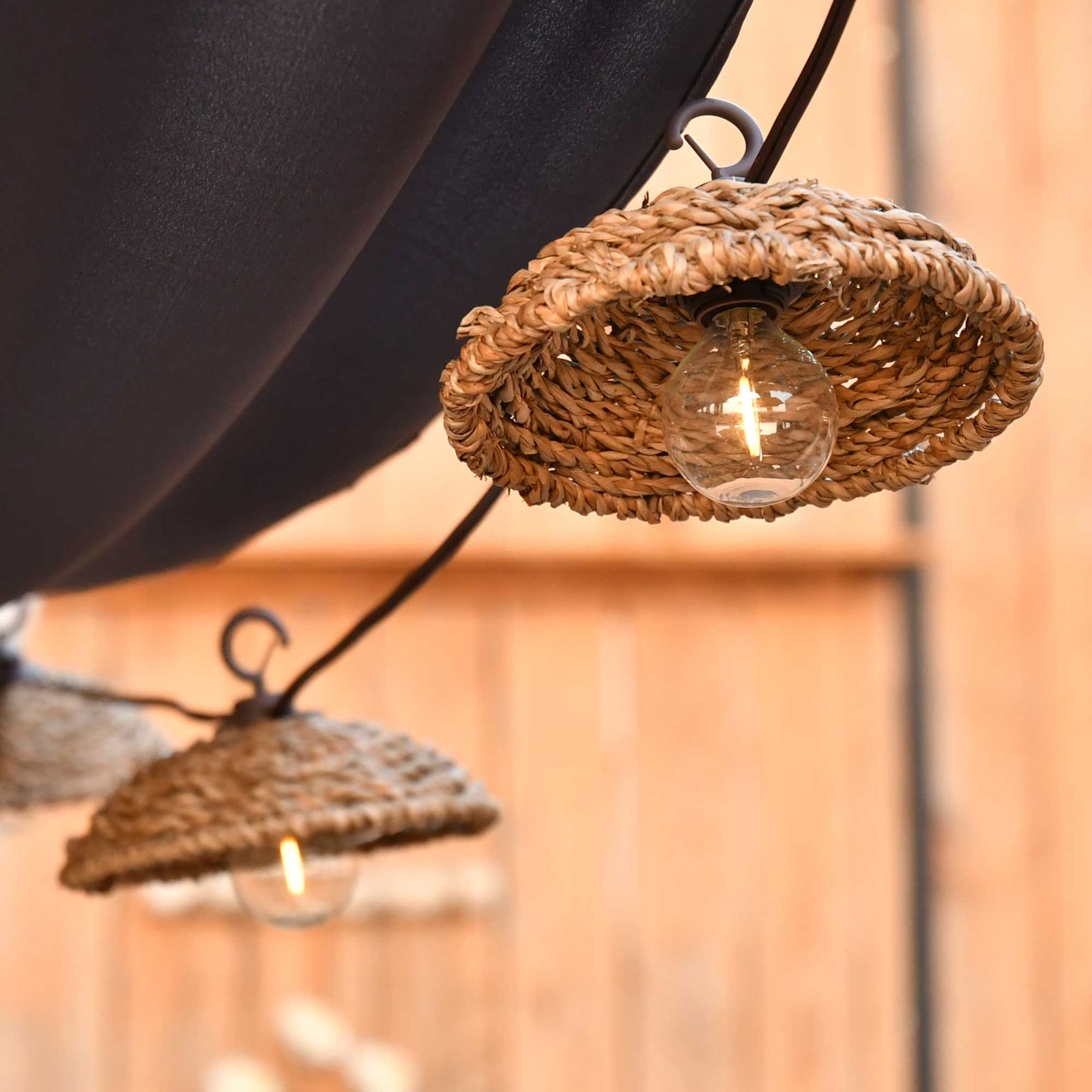 Tendance, équipée d'abats-jour en matériau naturels, cette guirlande solaire accompagnera vos douces soirées d'été. Idéale pour décorer votre balcon, votre terrasse, patio ou encore vos arbres.