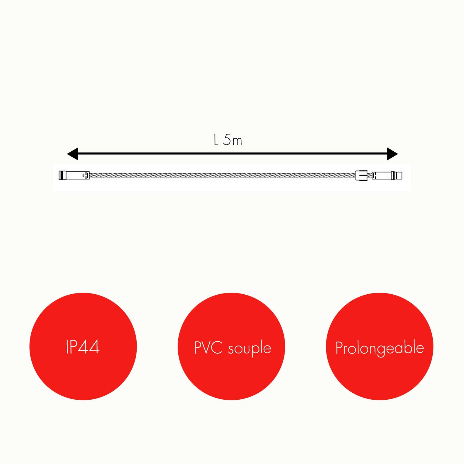 La rallonge connecteurs TØ13mm est uniquement compatible avec avec les produits Twinkly Pro Ø13mm après transformateur.