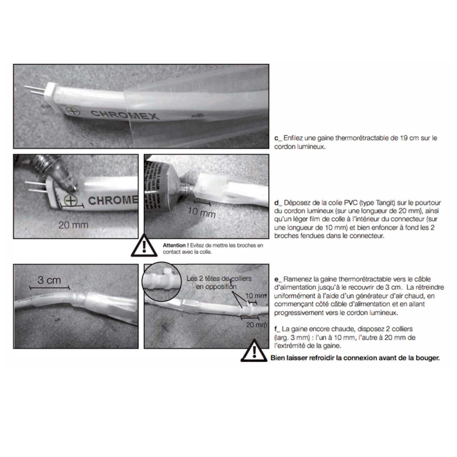 Le connecteur permet de raccorder le cordon lumineux référence 050811. Le kit de raccordement est composé :