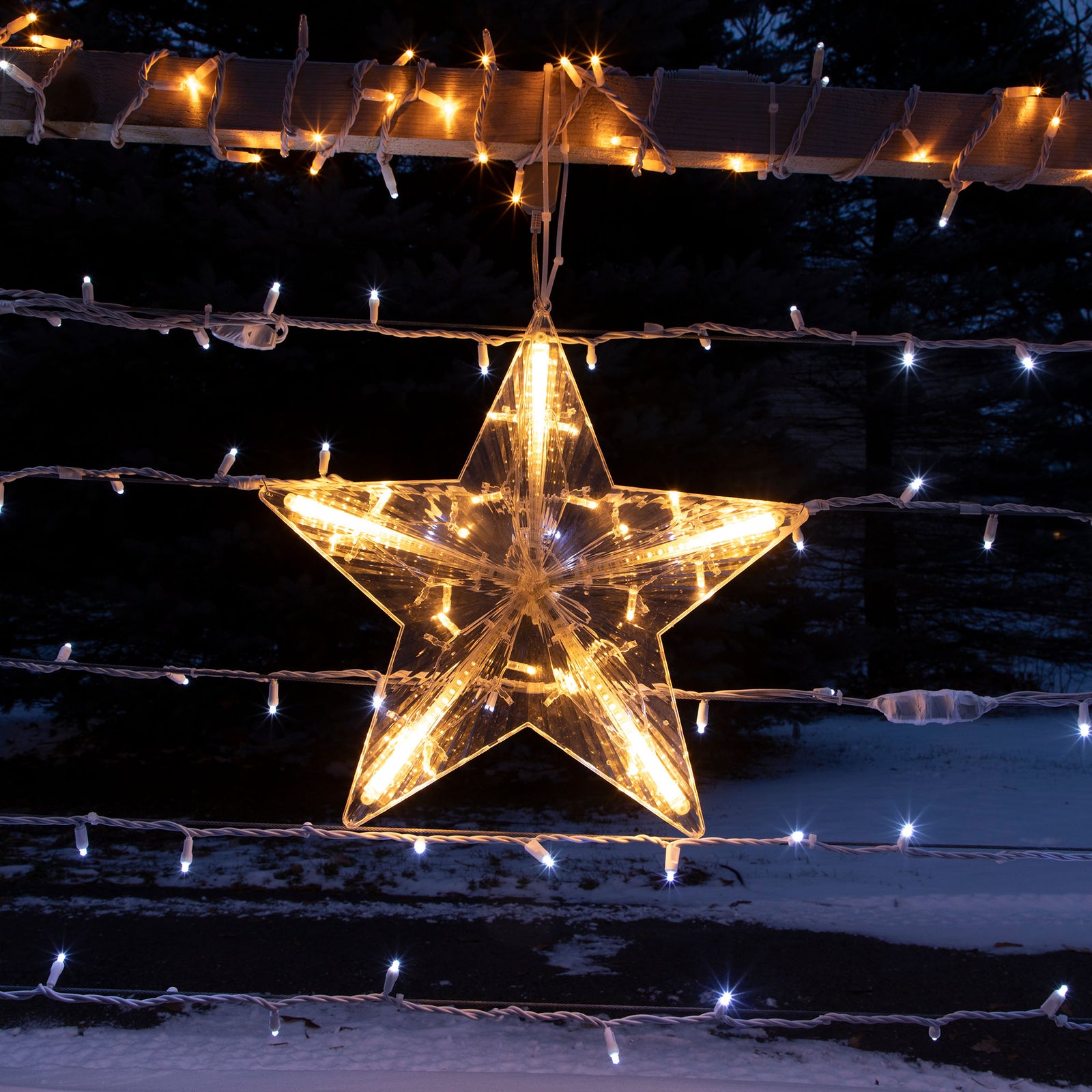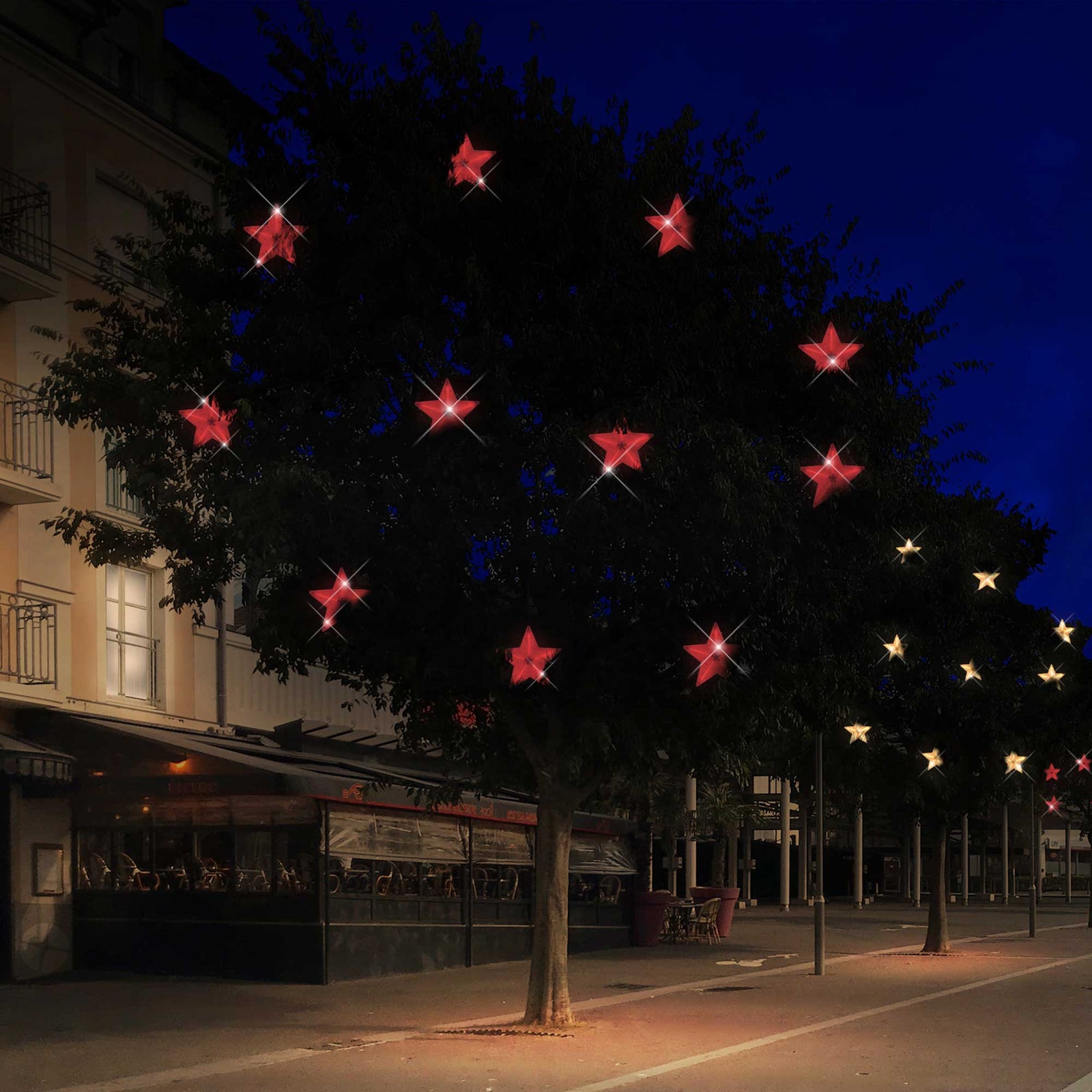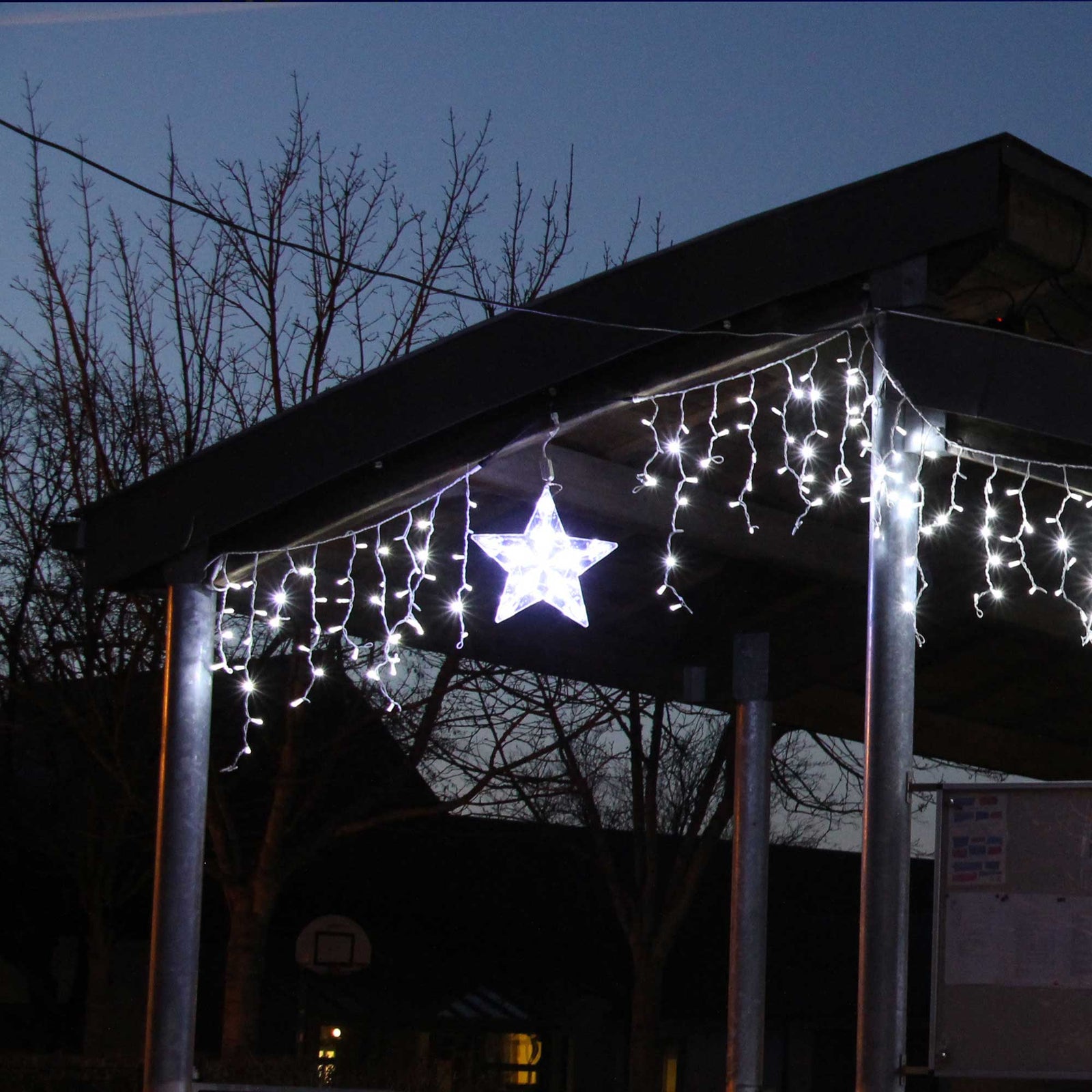 Cette étoile est composée de 110 LED animées. L'animation est étoiles est défilantes. Sa luminosité est de 400 lumens.