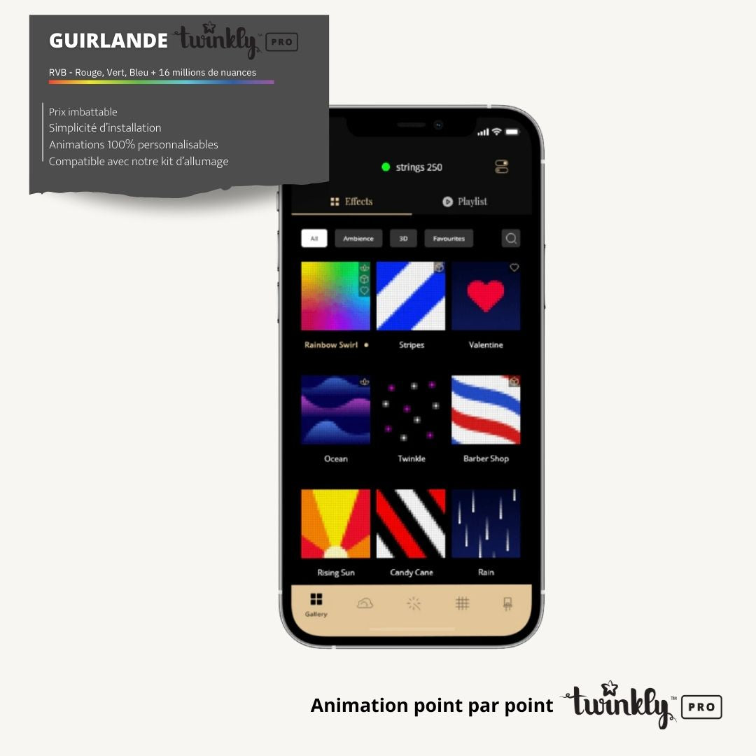 • Animation : Animation point par point par application Twinkly (uniquement sur iOS)