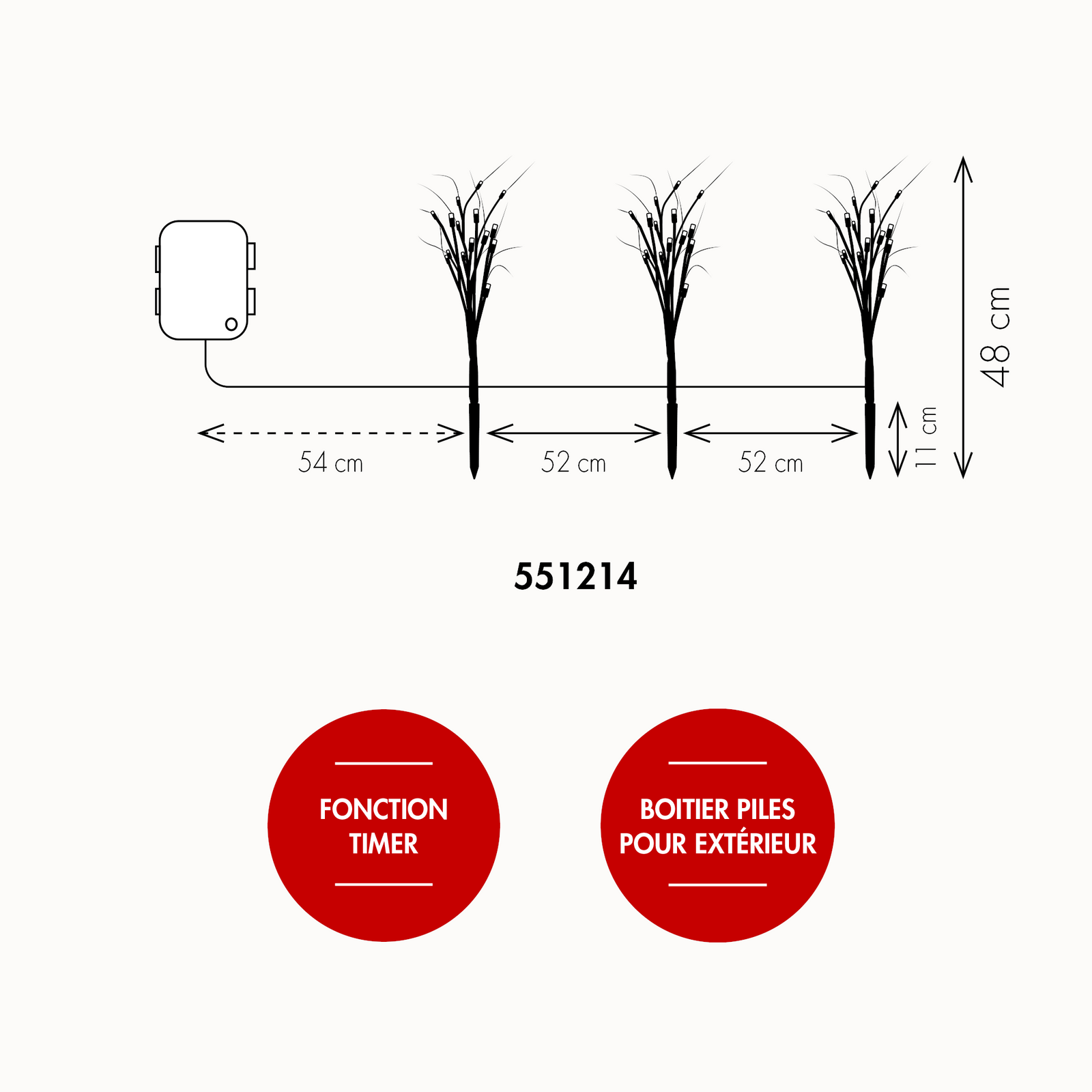 Chaque piquet comporte 60 LED fixe Blanc chaud.